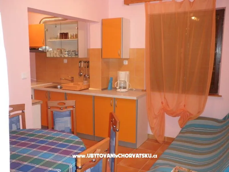 Apartments M are located in a quiet bay Prigradica and offers beautiful views of the sea, islands and sunset. Located just 10 meters from the sea and a private concrete beach. Above the beach is a special place in the shade, with a stone table and benches where you can hide. The apartments have free parking, fireplace, terrace with wooden garden furniture. The owners lives in the house and are at all times available to guests. Towels and bed linen are included and changed once a week. A welcome bottle of wine and food. Arrival time: 13-22 hours. Departure time: 8-10 hours. Guests pay 10% of the rental price to the bank account of the owner of the house. One apartment has a washing machine and the other not, but at the owner's washing machine is available.