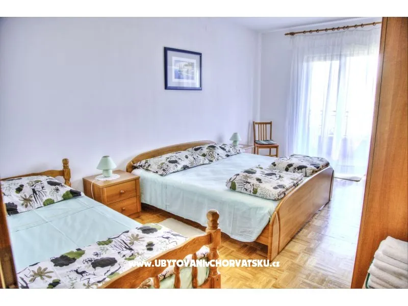 Holiday house of 100 m2 with two terraces and yard with barbecue, kitchen, three bedrooms, bathroom, separate toilet, dining room and living room.