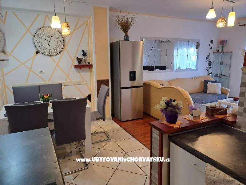 Apartment Malu is located in a quiet location. It consists of a living room, a dining room and a kitchen on the ground floor and 2 bedrooms and a bathroom on the first floor.