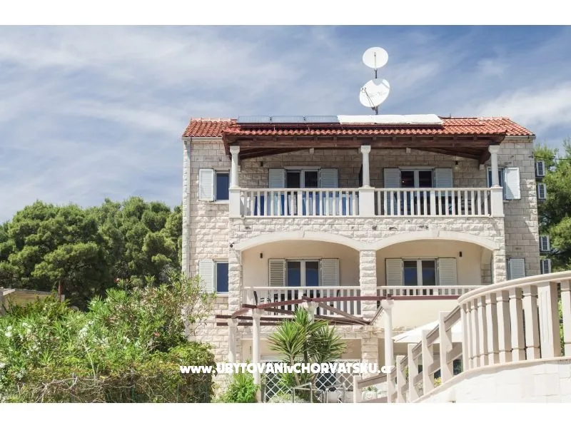 The house with a private pool of 75m2, nine air-conditioned apartments and private free parking in the shade of a pine forest, is located in a quiet part of Sumartin with a beautiful view of the sea, the islands, Biokovo, Hvar and Pelješac. The facility is located right next to the beach, twenty meters from the sea and faces south. In total, nine air-conditioned apartments can accommodate up to 34 people. The apartments are divided into floors: four on the first floor and four on the second, while one is located on the ground floor. Depending on availability, we will offer you apartments that are available at that moment. Prices are lower in June and September, so feel free to contact us for offers for those periods. Washing machine available on request. Restaurants, coffee bars, supermarkets, post office and the town center are about 500 meters away. Accommodation on 1 floor: 1. Apartment 2+2: 50 m2, 1x bedroom with double bed, two beds/armchair in the living room, kitchen, bathroom, private terrace facing south; 2. Apartment 2+2: 50 m2, 1x bedroom with a double bed, two beds/armchairs in the living room, kitchen, modernized bathroom, private terrace facing south; 3. Apartment 2+0: 30 m2, 1x bedroom with double bed, living room, kitchen, modernized bathroom, private small balcony facing north; 4. Apartment 5+0: 70 m2, 2x bedrooms (a: double bed + bed for one person; b: double bed), living room, kitchen, bathroom, private terrace facing west. Accommodation on the 2nd floor: 5. Apartment 2+2: 50 m2, 1x bedroom with double bed, two beds/armchair in the living room, kitchen, bathroom, private terrace facing south; 6. Apartment 2+2: 50 m2, 1x bedroom with double bed, two beds/armchair in the living room, kitchen, modernized bathroom, private terrace facing south; 7. Apartment 2+0: 30 m2, 1x bedroom with double bed, living room, kitchen, modernized bathroom, private small balcony facing north; 8. Apartment 5+0: 70 m2, 2x bedrooms (a: double bed + bed for one person; b: double bed), living room, kitchen, bathroom, private terrace facing west. Accommodation on the ground floor: 9. Apartment 4+0: about 45 m2, 2x bedrooms (a: double bed; b: 2x single bed), modern kitchen, living room, bathroom with hydromassage, private terrace facing south. It is possible to accommodate up to 34 people in nine air-conditioned apartments. The apartments are divided on floors: four on the first floor and four on the other, while one is on the ground floor. Depending on the availability, we will offer you the apartments that are available at that moment. Prices are lower in June and September, so feel free to contact us for offers for those periods. In all apartments there is a new kitchen plate, a new workpiece and a new sink mixer, while the five apartments are completely redesigned; so apartments are modernized. The bathrooms in the other four apartments will be redesigned for the next (2020) season. There is a large common terrace in front of the pool with deckchairs, tables and chairs for enjoying the eye and in front of the pool. Washing machine available upon request. Restaurants, cafes, supermarkets, post office and center are about 500 meters away. Accomodation on the 1st floor: 1. Apartment 2 + 2: 50 m2, 1x bedroom with double bed, two beds / armchairs in the living room, kitchen, bathroom, private terrace facing south; 2. Apartment 2 + 2: 50 m2, 1x bedroom with double bed, two beds / armchairs in the living room, kitchen, modern bathroom, private terrace facing south; 3. Apartment 2 + 0: 30 m2, 1x bedroom with double bed, living room, kitchen, modern bathroom, private small balcony facing north; 4. Apartment 5 + 0: 70 m2, 2x bedrooms (a: double bed + single bed, b: double bed), living room, kitchen, bathroom, private terrace facing west. Accommodation on the 2nd floor: 5. Apartment 2 + 2: 50 m2, 1x bedroom with double bed, two beds / armchairs in the living room, kitchen, bathroom, private terrace facing south; 6. Apartment 2 + 2: 50 m2, 1x bedroom with double bed, two beds / armchairs in the living room, kitchen, modern bathroom, private terrace facing south; 7. Apartment 2 + 0: 30 m2, 1x bedroom with double bed, living room, kitchen, modern bathroom, private small balcony facing north; 8. Apartment 5 + 0: 70 m2, 2x bedrooms (a: double bed + single bed, b: double bed), living room, kitchen, bathroom, private terrace facing west. Ground floor accommodation: 9. Apartment 4 + 0: approx. 45 m2, 2x bedrooms (a: double bed, b: 2x single bed), modern kitchen, living room, bathroom with hydro massage, private terrace facing south.