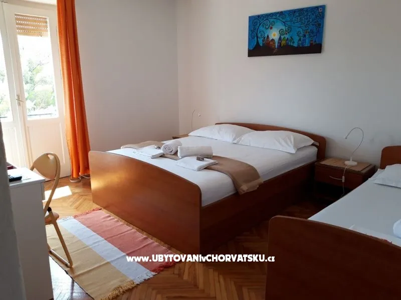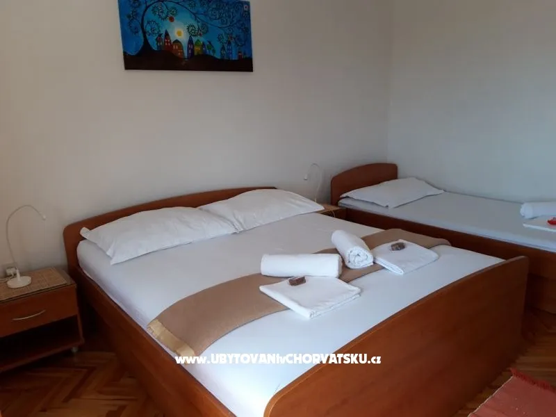 Room size is 19 m2 and is located on the first floor. The room facing south overlooking the sea. The room has two beds (double bed) and extra bed. It is equipped with LED TV diagonal 82 cm with satellite TV system. On the large common terrace (42 m2) room