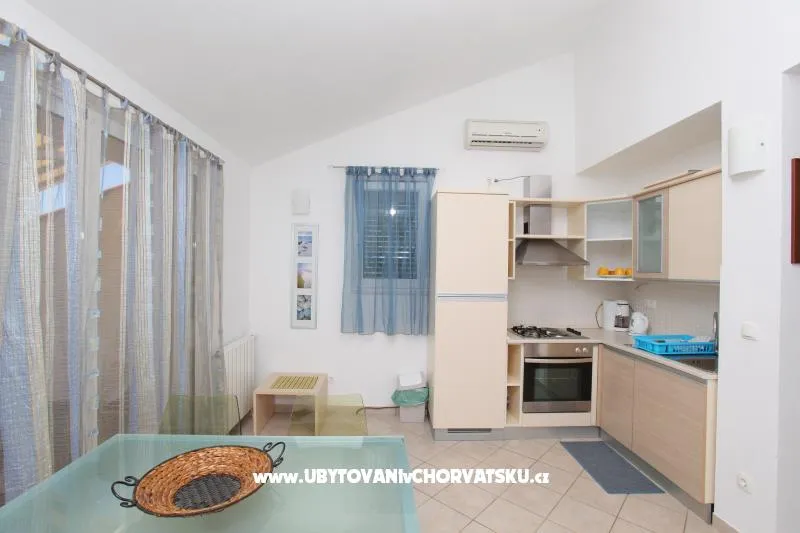 Apartment Terra is located on the ground floor, comfortable and has a large spacious terrace suitable for socializing. Terra is pleasant, especially in summer. A beautiful stone fireplace is located in the area and calls on preparing delicious fish and me