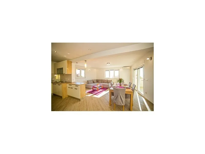 Luxurious apartment (4*) ideal for family with children or two couples. It has two bedrooms, two bathrooms, large living room with sofa, dining area and fully equipped kitchen. Swimming pool and teras