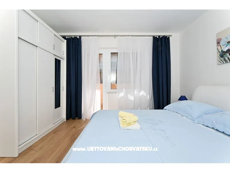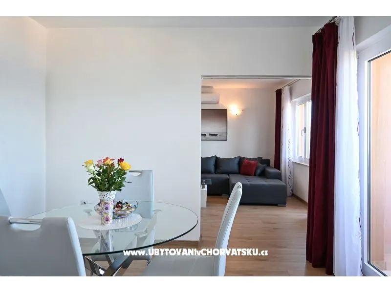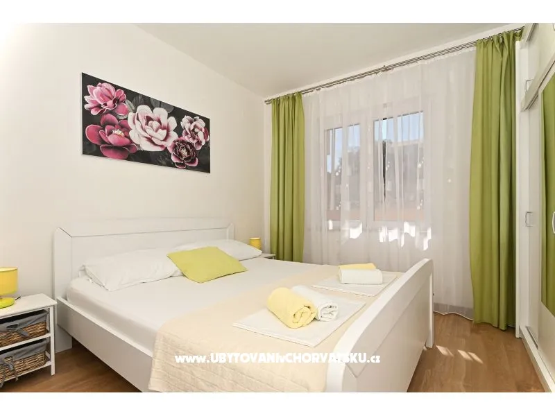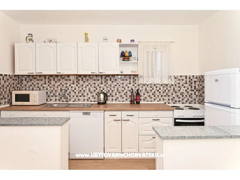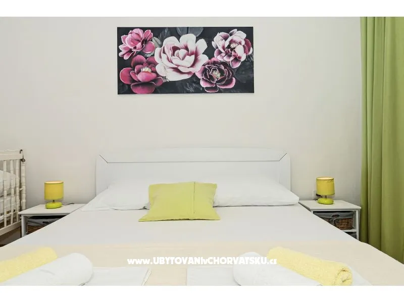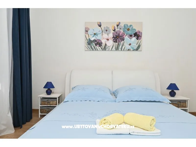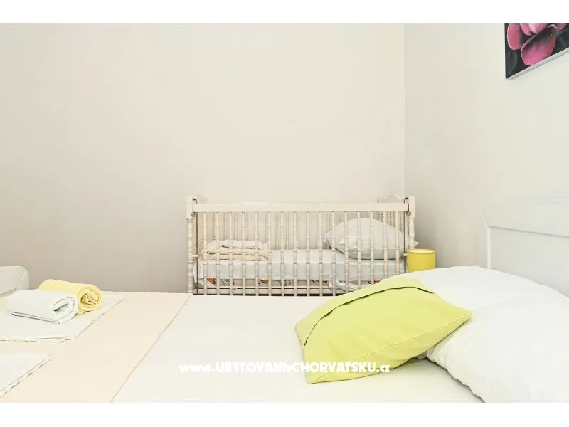 You pay 35% deposit + reservation fee per reservation. The rest is paid upon arrival at the facility. The minimum stay is 5 nights in the high season (July and August). Check-in is from 2pm; Check-out until 10 am. Apartment Radelic is located 150 m from the beach (type of beach: concrete, pebble). It has 1 private balconies / terraces with a sea view and 1 with a garden view. There is an additional barbecue area, with a kitchenette and an outdoor shower in front of it. The area is shared with the owners. Baby cot-on request. Outdoor facilities: outdoor grill, car access, private parking, garden, outdoor shower