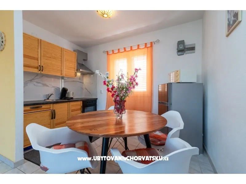 You pay 35% deposit + reservation fee per reservation. The rest is paid upon arrival at the facility. Minimum stay is 4 nights, during the high season 6 nights, departures and arrivals possible every day. 5% discount for a stay of 14, 10% for 15-21 nights stay and 15% dischount for a stay of 22 nights and more. Check-in is from 2pm; Check-out until 10 am. Baby cot-on request. Apartments Maric are located 40 m from the beach (type of beach: concrete, pebble). Each apartment has a private terrace or balcony with a sea view. Option of a portablale barbecue on the terrace. There is a shared terrace with barbecue area. Outdoor facilities: outdoor barbecue, private parking