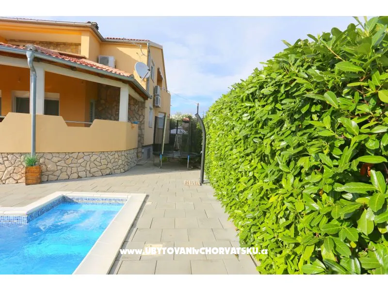 Cozy apartment Kakma in the heart of Dalmatia near Biograd na moru (a famous yachting resort), with a large swimming pool, a pleasant garden and a strategic location for various trips around the area. Quiet part of the village without traffic noise, comfortable garden furniture and sun loungers by the pool, barbecue, spacious private parking. The entire upper floor is available for rent with a pleasant view of the surroundings. The pool is just for you. Absolute privacy. For eight people in total. Biograd na moru is an ideal starting point for boat trips to the Kornati National Park and neighboring islands. Boat trips to see dolphins. It is also ideally located for visiting protected areas on land: the Paklenica and Krka National Parks and the Vrana Lake Protected Landscape Area are very easily accessible from here. Bicycle and sports equipment rental nearby. There is also a riding club nearby, which offers interesting horse rides. You can also visit local farms that specialize in growing organic grapes and olive oil. A long promenade runs along the coast from Bošana Beach in the north to Soline Bay in the south, with beautiful views of lighthouses and the sea dotted with islands. Biograd is a traditional, beautifully landscaped and picturesque holiday resort with lush coastal vegetation, clean beaches and numerous entertainment and sports facilities (including FunPark Biograd). Thanks to our real knowledge of the place, we will be happy to advise you on other excursion destinations if you are interested. We pride ourselves on an individual and human approach to each guest. There are two similar apartments in the house, it is possible to rent both at the same time, so then with a total capacity of 8 people. In this case, the price is multiplied by two. The price is always for one apartment for max. 4 people. With us you know your host from the beginning of the booking, we are there for you at any time before your arrival (if you need anything) and if necessary we can be reached on site. You have one contact person who is available to you at any time - and that is the added value that counts. Rental conditions: 40% payable upon booking, the rest after arrival. We look forward to seeing you in the heart of Dalmatia! Do not hesitate to contact us at any time by email or phone.