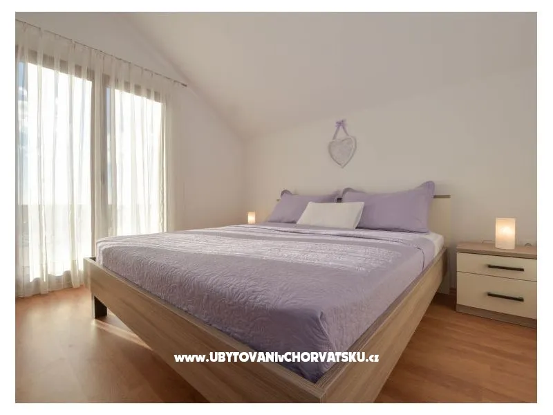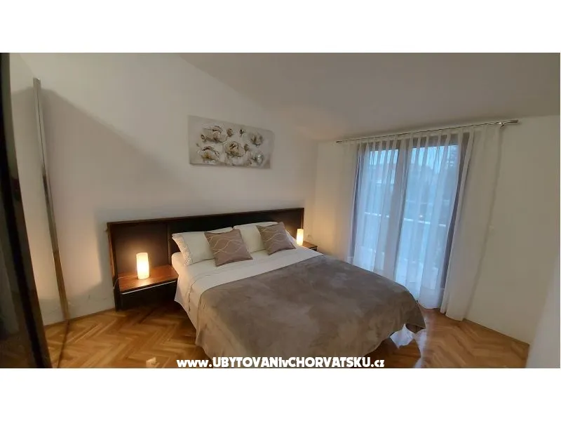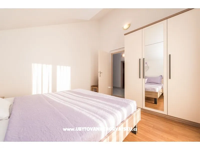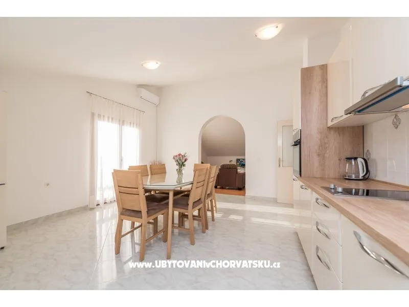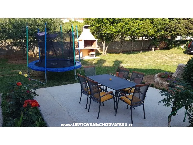 Air-conditioned apartment on the second floor of the family house with common entrance (120m2).WIFI, 3 bedrooms(each bedrrom has its own AC), fully equipped kitchen with dishwasher, fridge,freezer,owen,microwave owen, kettle, coffe machine, living room, bathroom, extra toilet, 3 terraces 2 of them with sea views. The apartment is surrounded by a large courtyard ideal for children, with garden and garden shower and a large parking lot.
