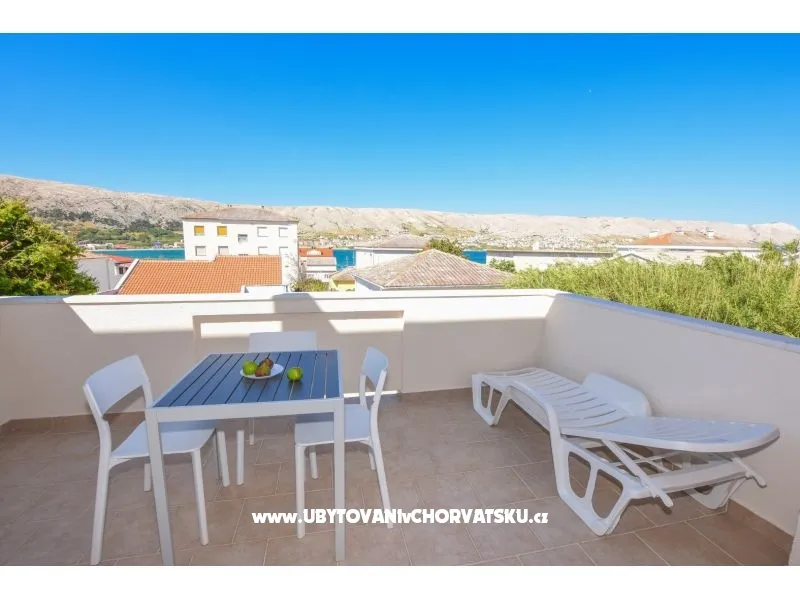 Large apartment with terrace and balcony, large bathroom. Double bed and extra bed in the bedroom. Sofa in the kitchen, safe, hairdryer. Washing machine in the laundry room on the ground floor.