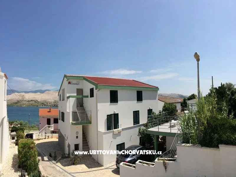 Gorgeous Villa Luna-mar ***, great prices, first row by the sea (100m to the beach), pétanque court, barbeque area, secured parking area, large garden and beautiful views of the sea and the town of Pag. Eight different types of apartments, ideal for families and children due to the large yard, proximity of the beach and content.