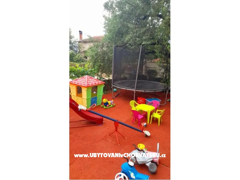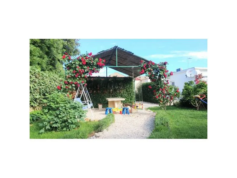 Apartment A4+1 is located on the ground floor. It has two bedrooms, a kitchen and a bathroom. There is a terrace in front of the apartment. Guests can also use the gazebo in the garden, grill, and children's playground.