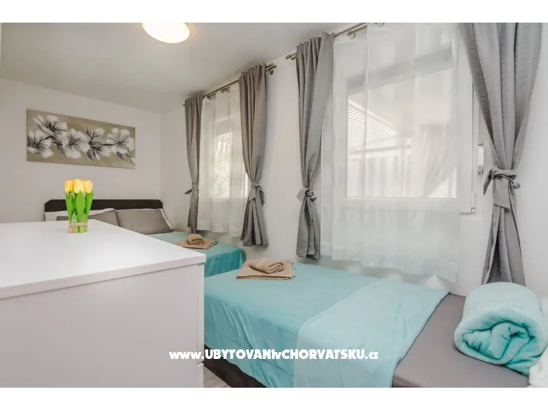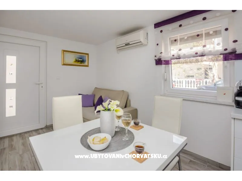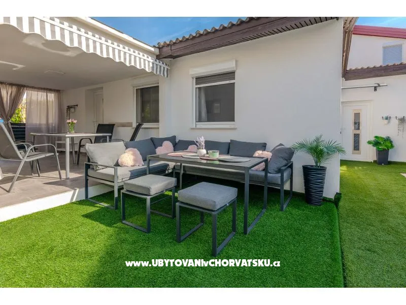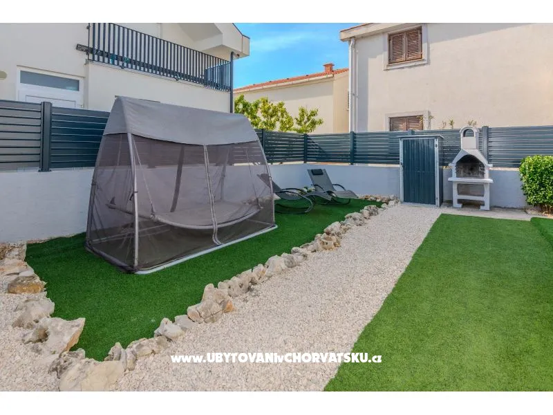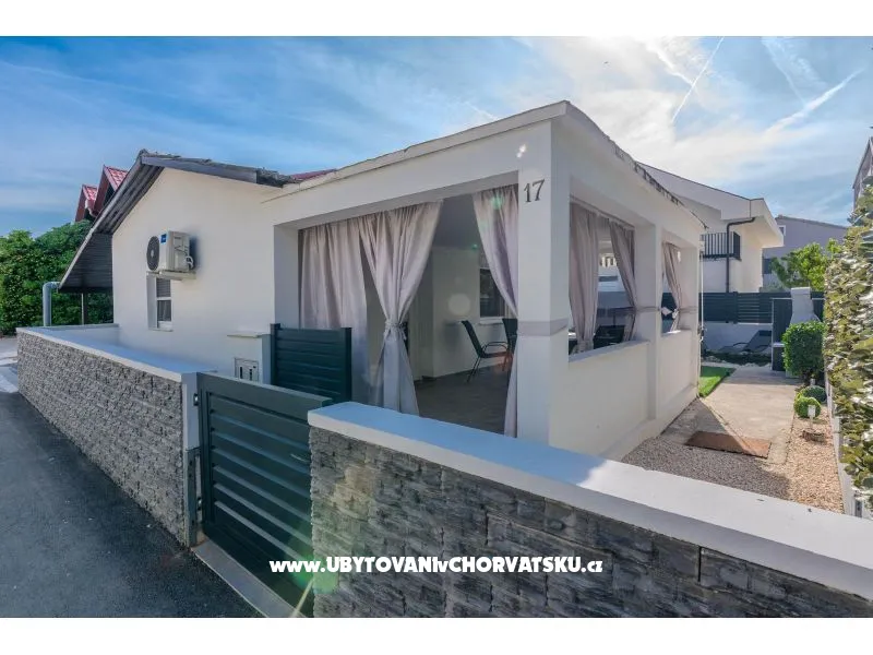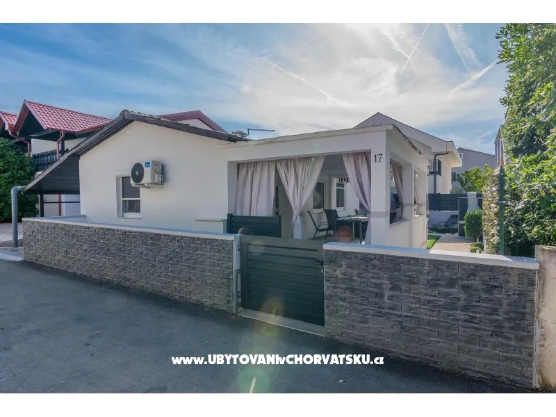 Fully and modernly equipped holiday house with a large terrace, yard and parking space. Located in the quiet southern part of the island of Vir, Prezide. 150m from the sea. The house is suitable for families with children because of the fenced yard.