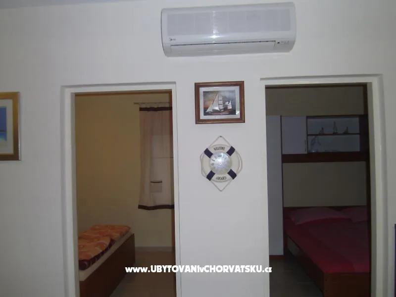 Each of the app. has 65m2 with 2 bedrooms with double-beds, bathroom,fully equipped living room ca be used as an additional bed for 2 more persons and with TV.Kitchen is also fully equipped (hot plate, cooker hood, refrigerator with cooling aggregate, dining table with chairs) Each of the app. has additional 20m2 of terrace. Both app. are air-conditioned.